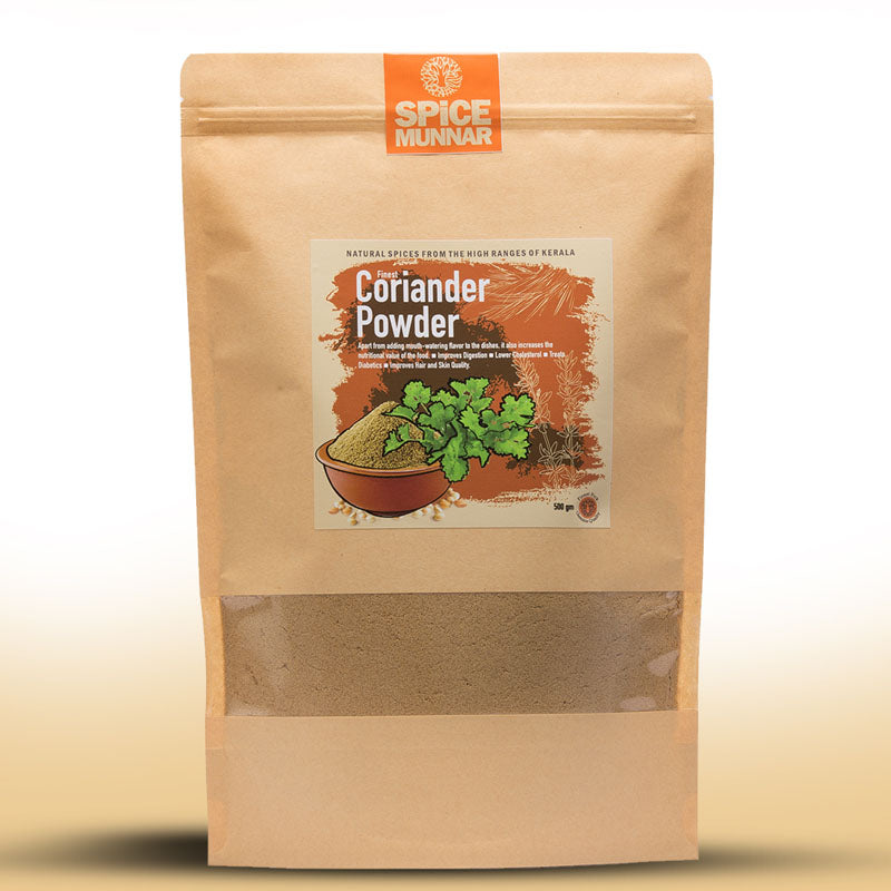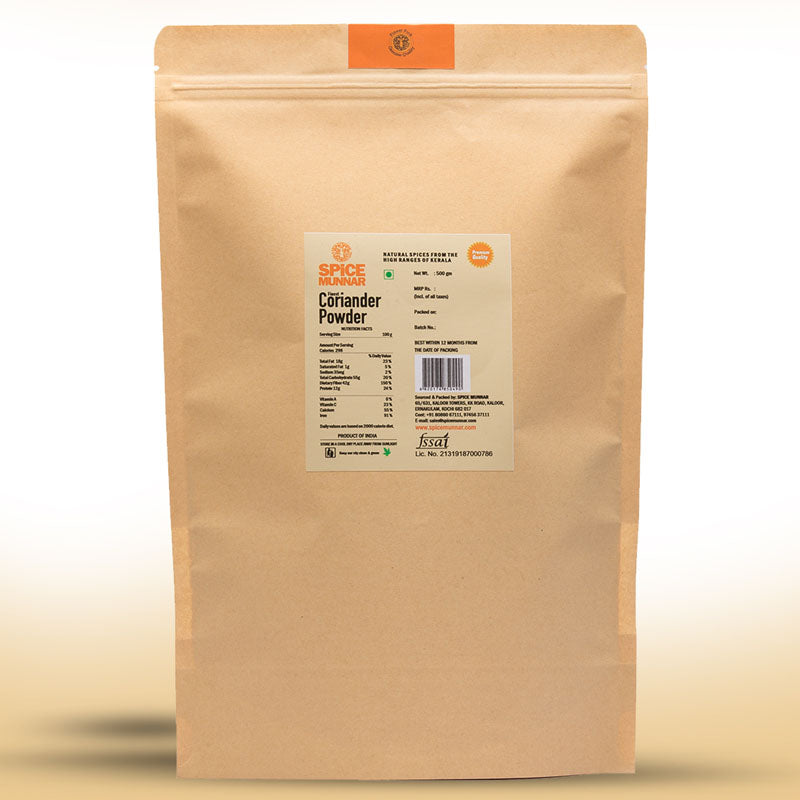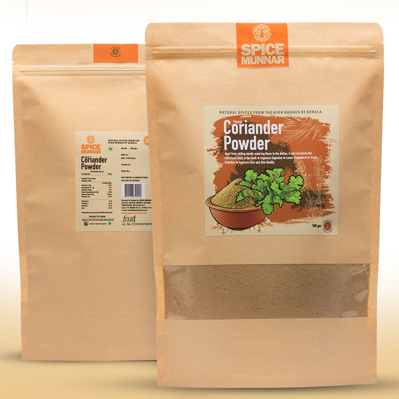 Grounded from coriander seeds, coriander powder is an essential condiment in the Indian cuisine. Very few dishes can be made without the touch of coriander powder. It has a pleasing aroma and savour. Coriander from which the powder is made is one of the world's oldest spices.