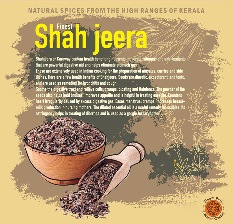 Shah Jeera, also known as black cumin seeds, royal cumin seeds or Caraway Seeds, is a commonly used spice in Indian cooking. Shahi Jeera is darker and sweeter in taste than ordinary cumin. It is used in curries and tandoori dishes. For a rich nutty flavor, toast the seeds briefly before using.